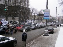 Участники акции протеста против увеличения транспортного сбора и налогов заблокировали улицу Грушевского. Движение транспорта в сторону Европейской площади заблокировано. ...